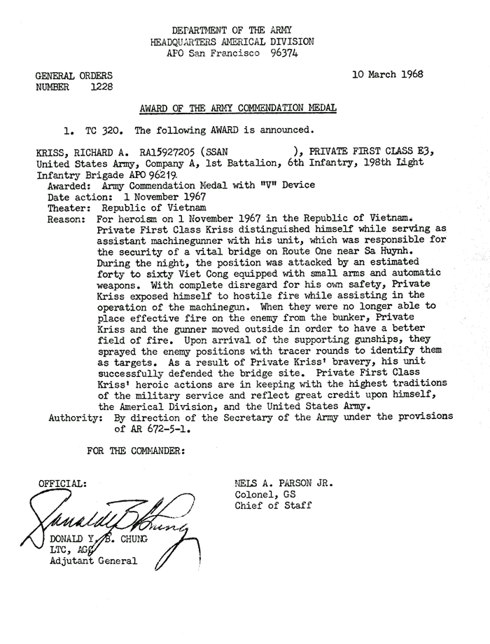| Prince | Charles | O | SSG | ACM w/V | A/1/6 | 1-Jan-68 | AD-68-1159 | |
