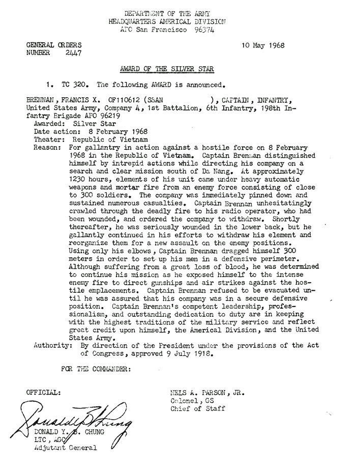 | Brennan | Francis | X | CPT | SS | A/1/6 | 8-Feb-68 | AD-68-2447 | |