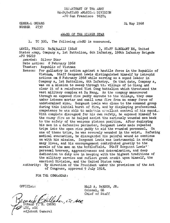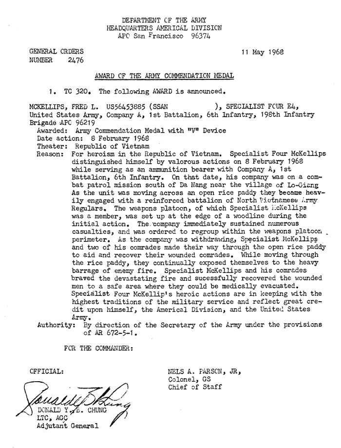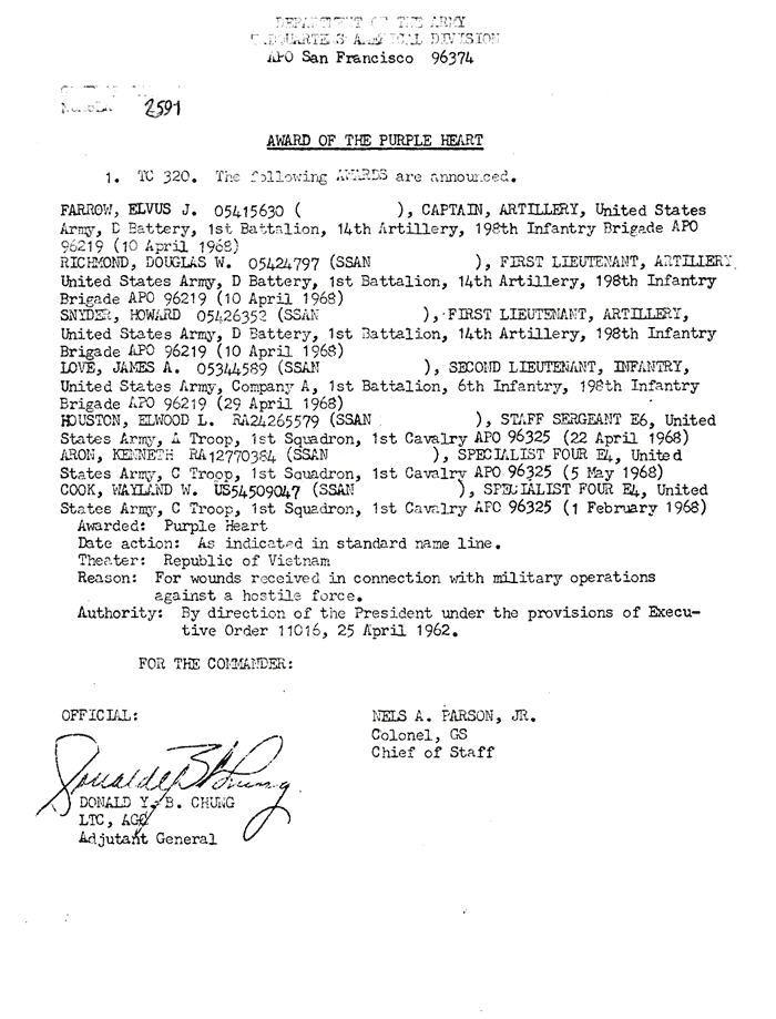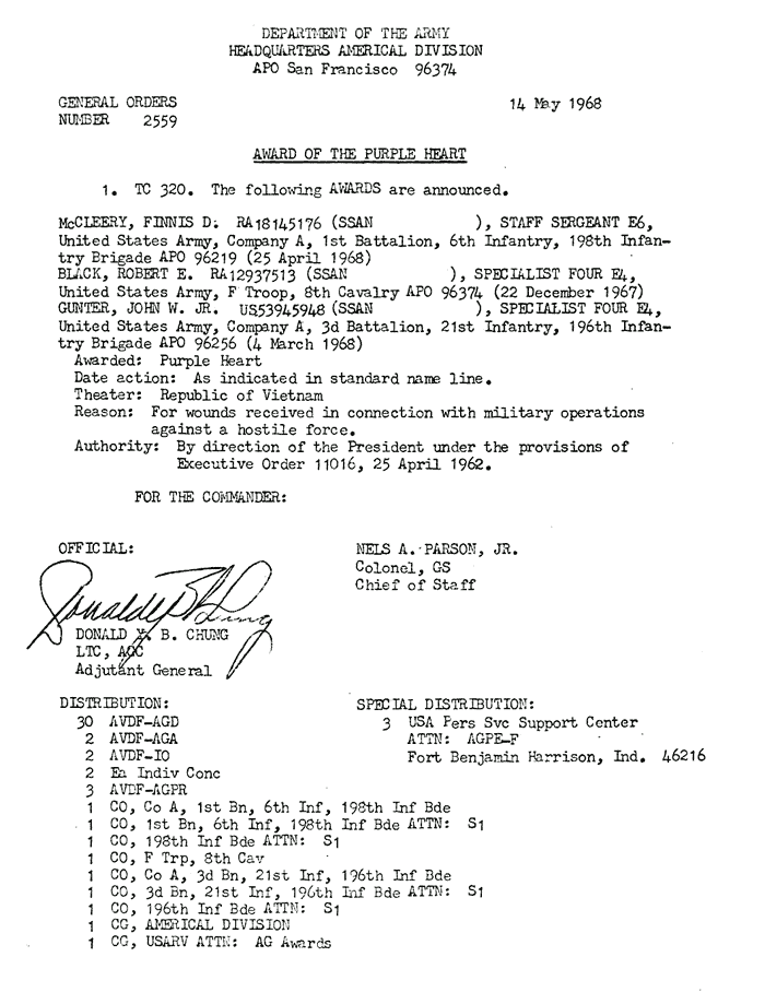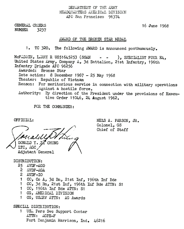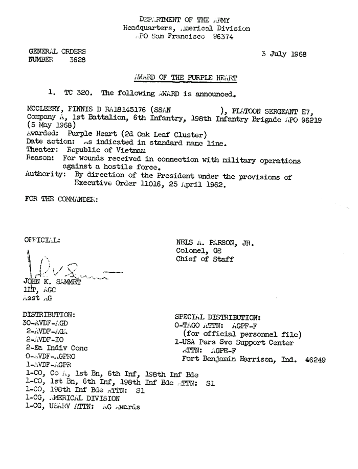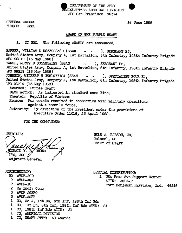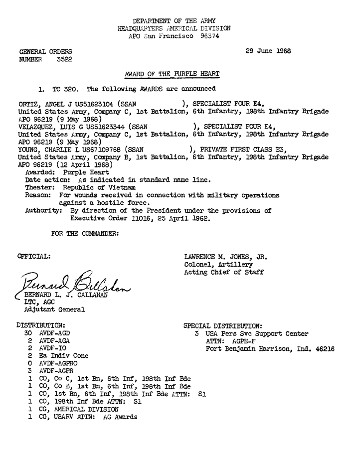 | Young | Charlie | L | PFC | PH | A/1/6 | 14-Apr-68 | AD-68-3522 |