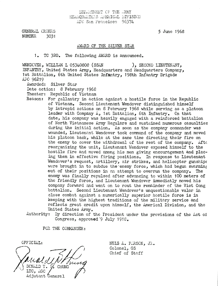 | Wendover | William | L | 2LT | SS | A/1/6 | 8-Feb-68 | AD-68-3031 | |